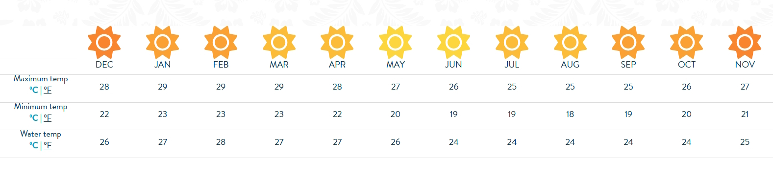 The Cook Islands is blessed with a pleasant and warm climate year-round, with slightly cooler days through winter and slightly warmer days through summer.